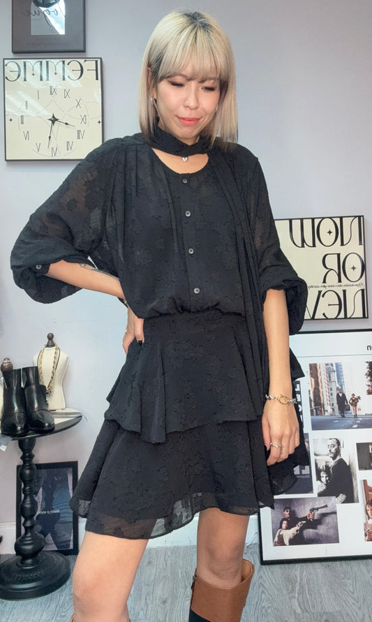 Front tie chiffon floral short one piece #00051
