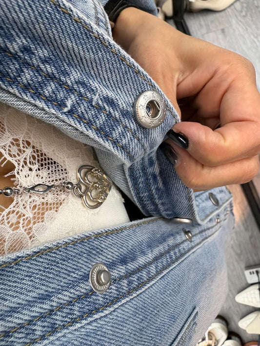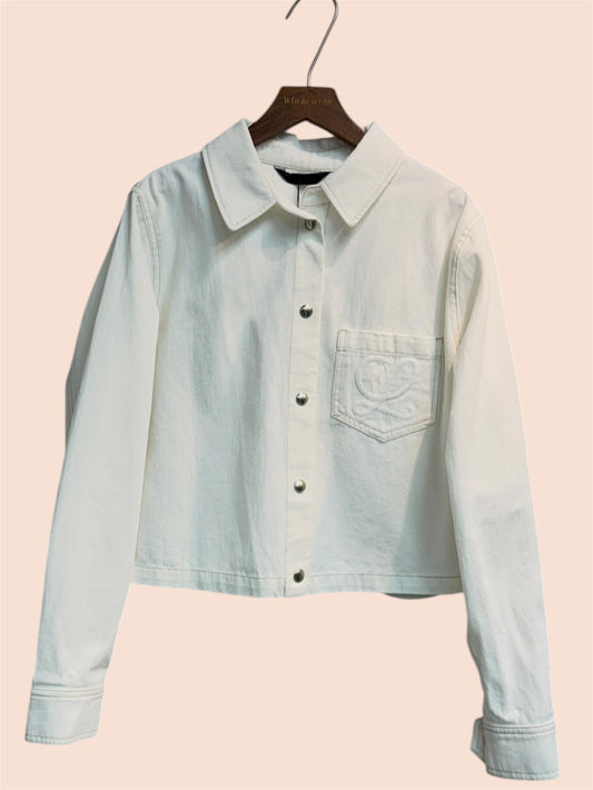 Embroidery pocket short denim jacket #00344
