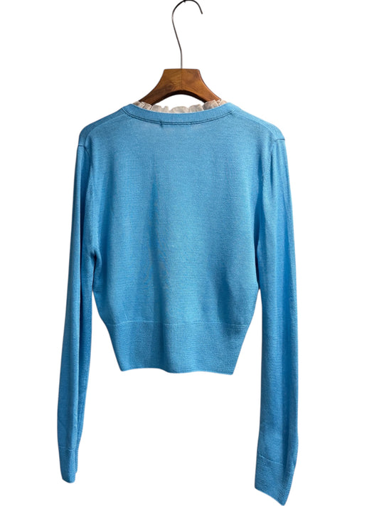 Ruffle v neck pearl buttons cardigan #00323
