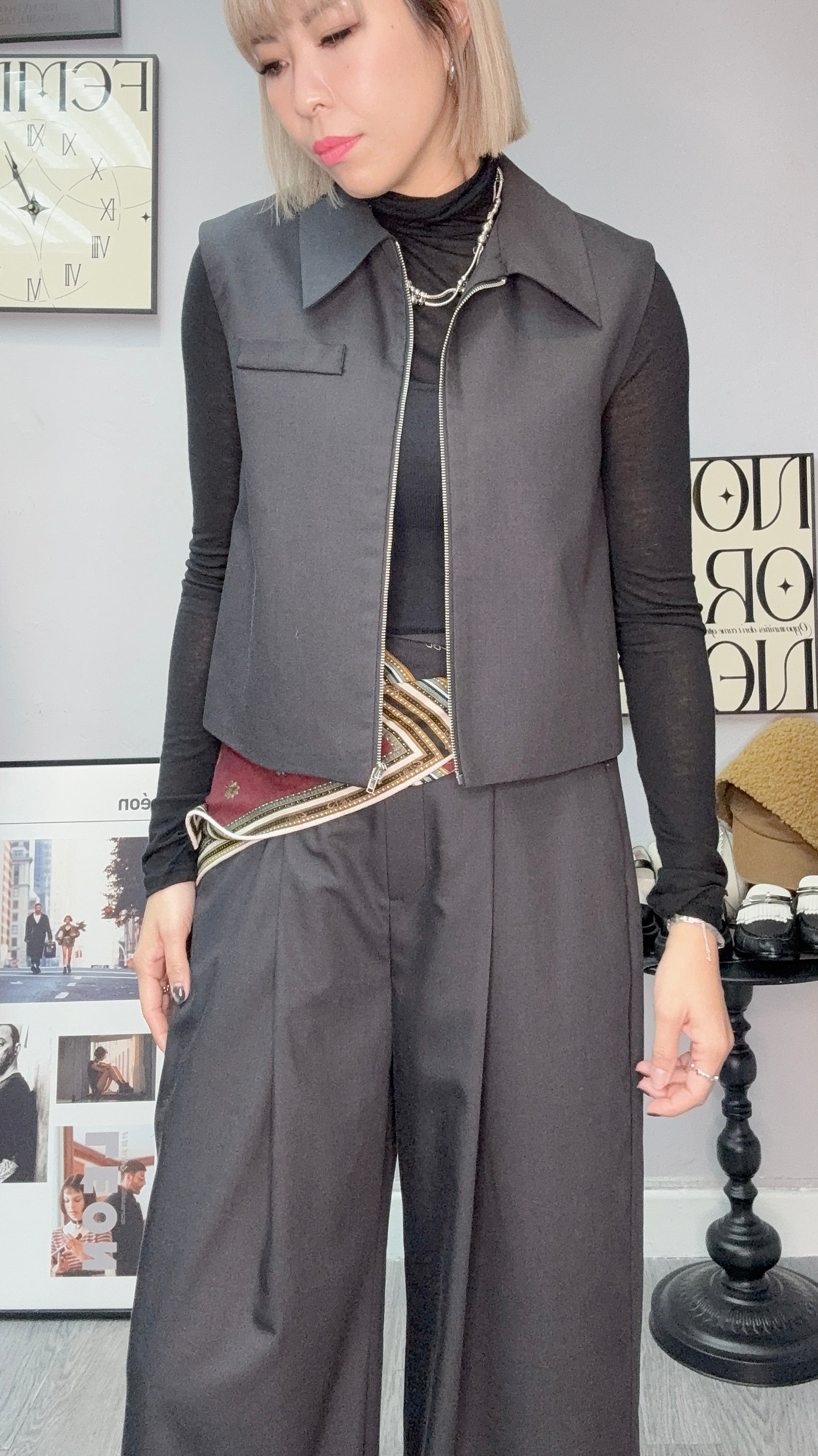 (-30% off)Shirt collar zip vest blazer #00181