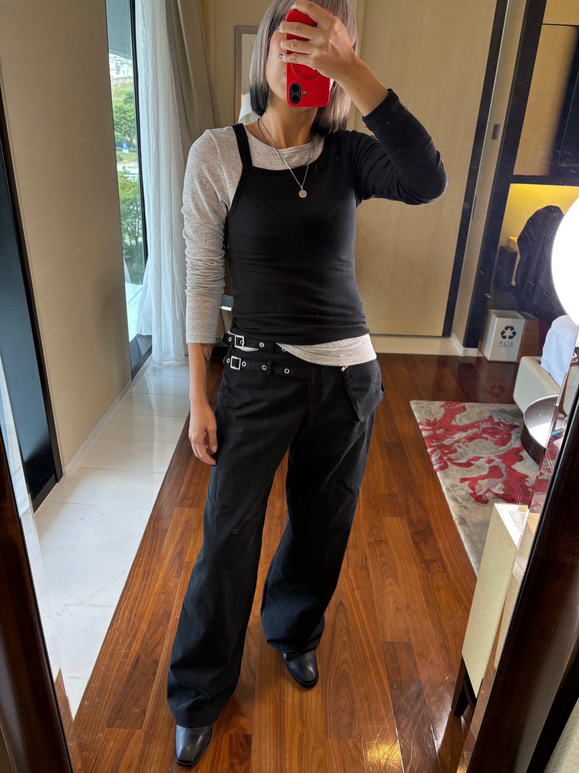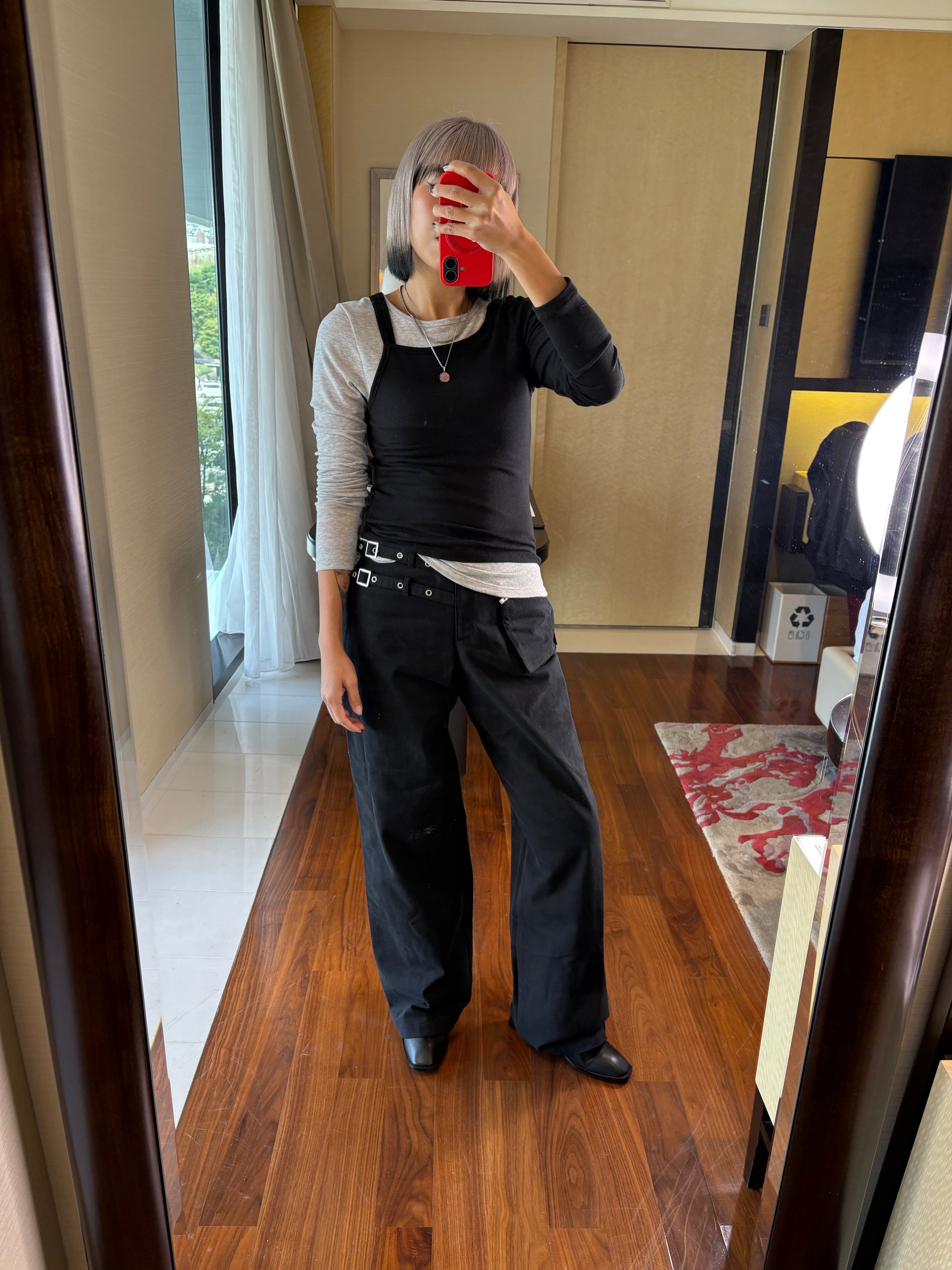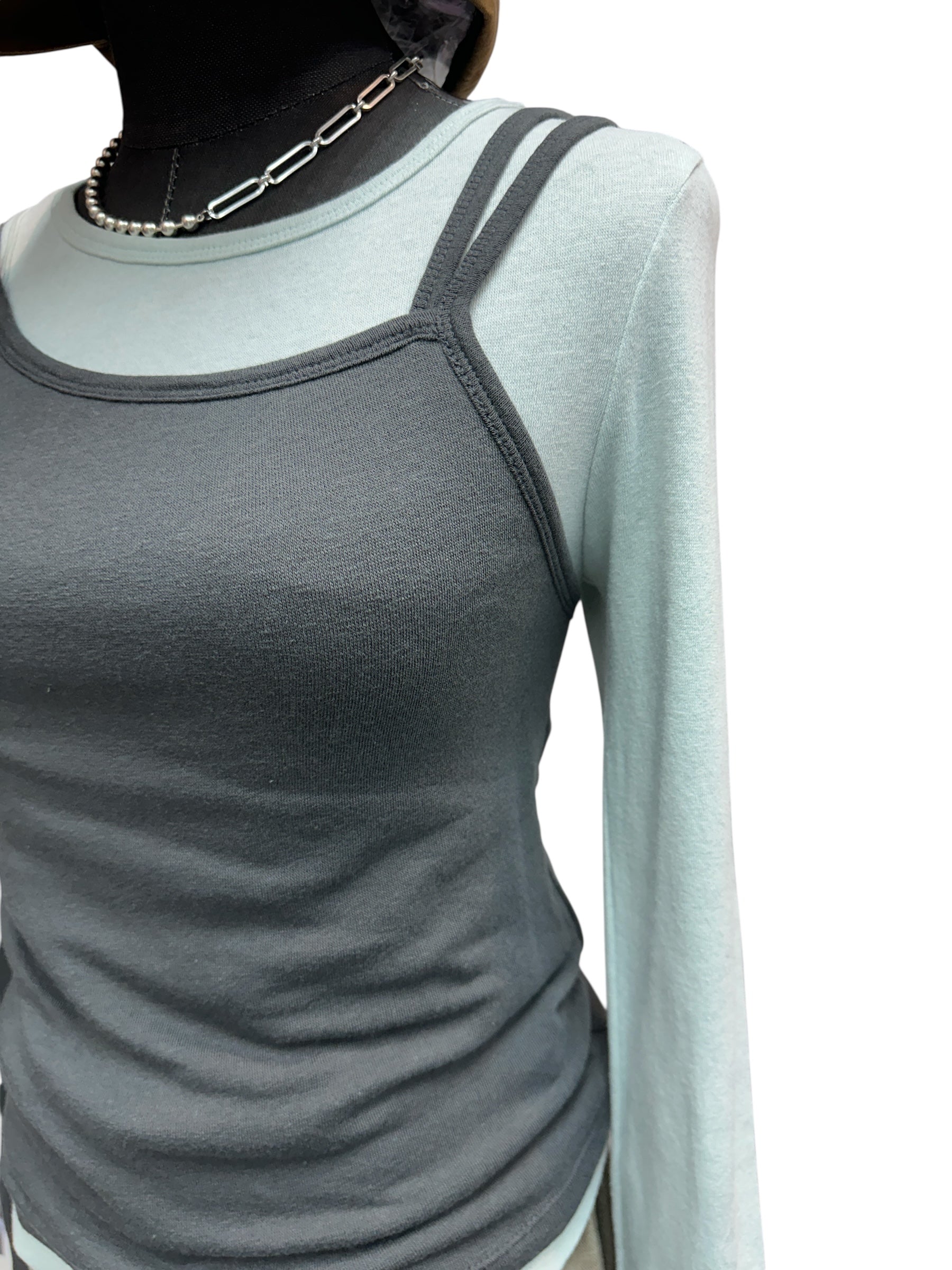 Double strap fake two pieces tee