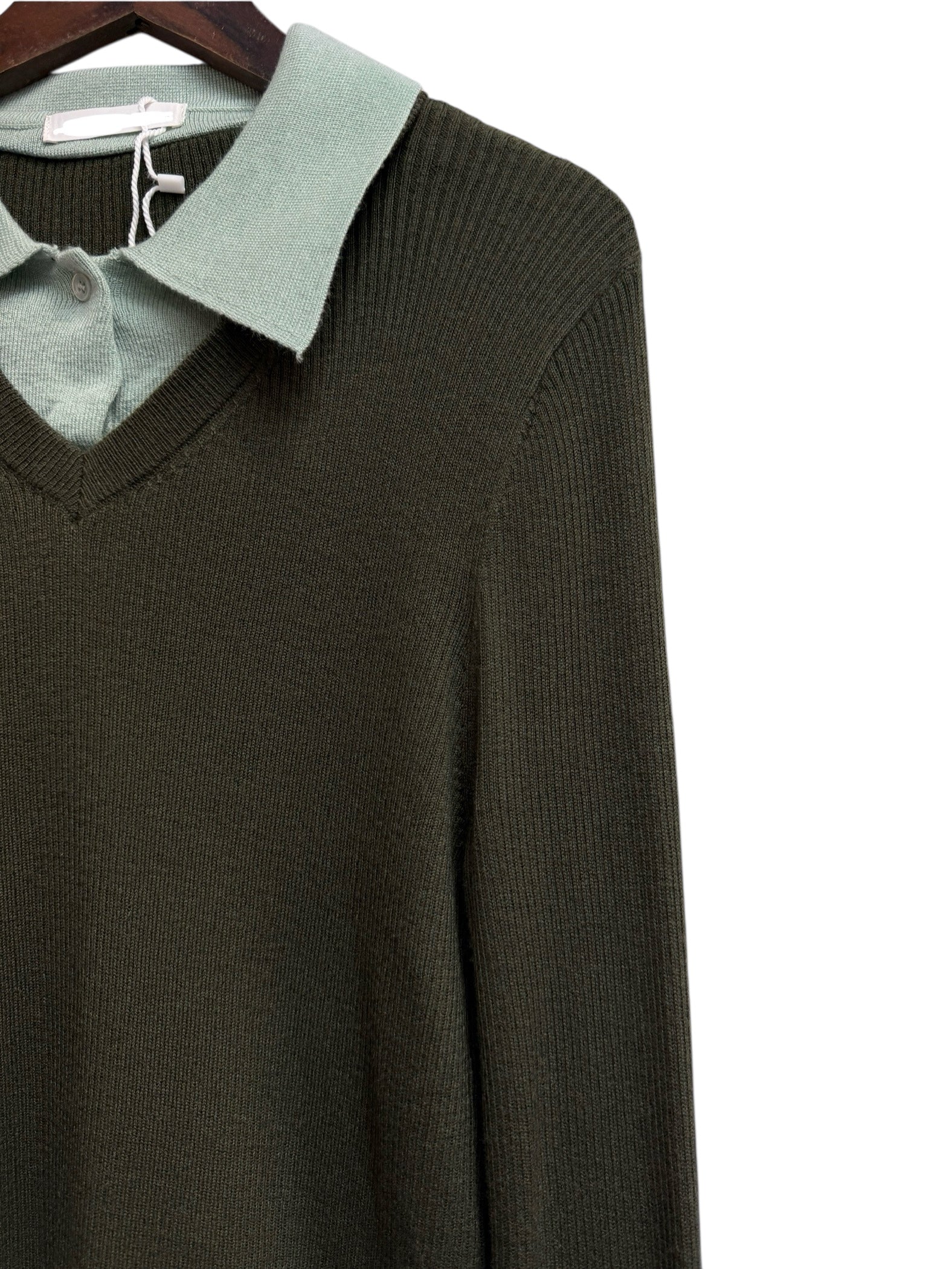Fake two piece rib knit top