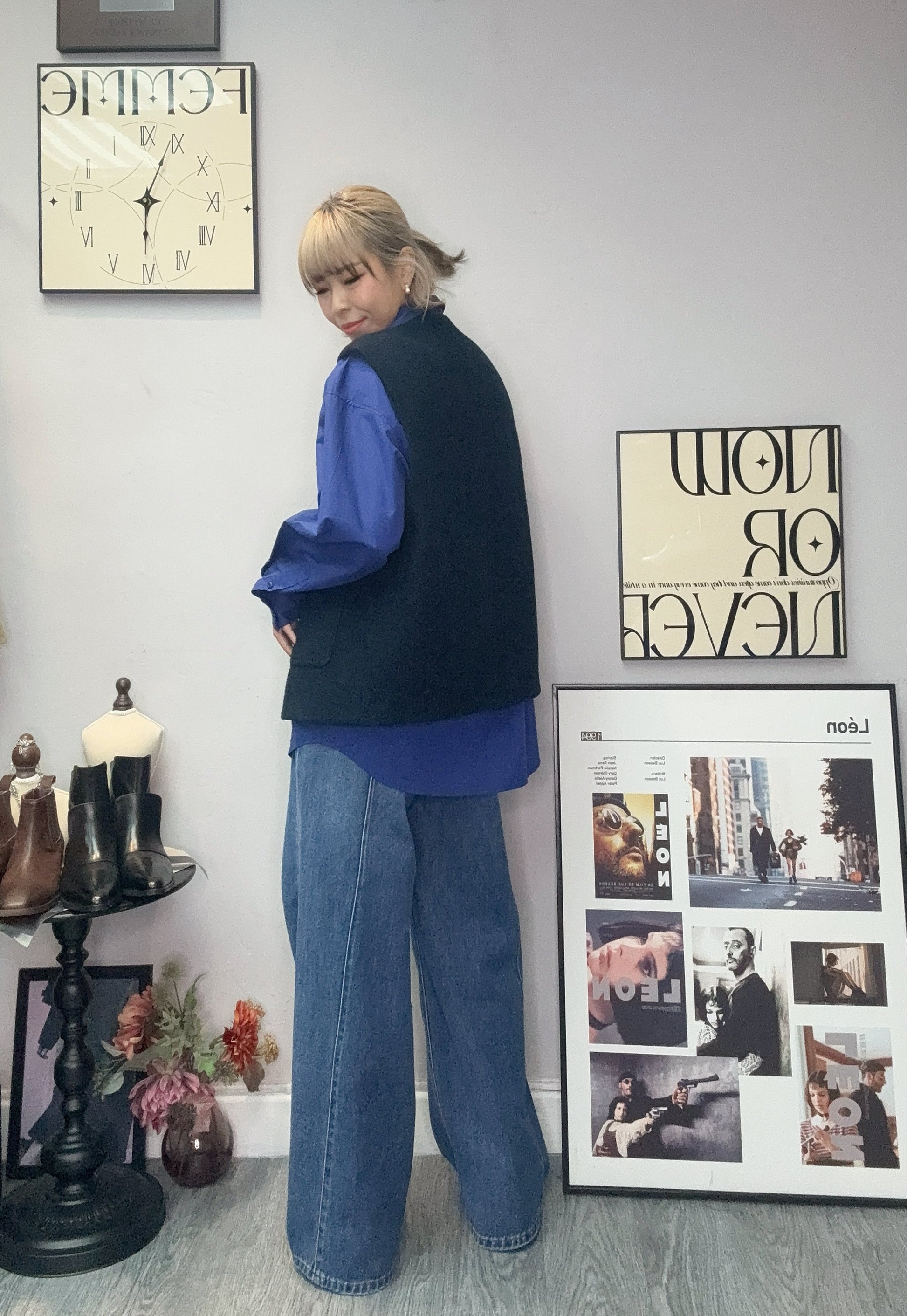 Pleated hem vest wool jacket