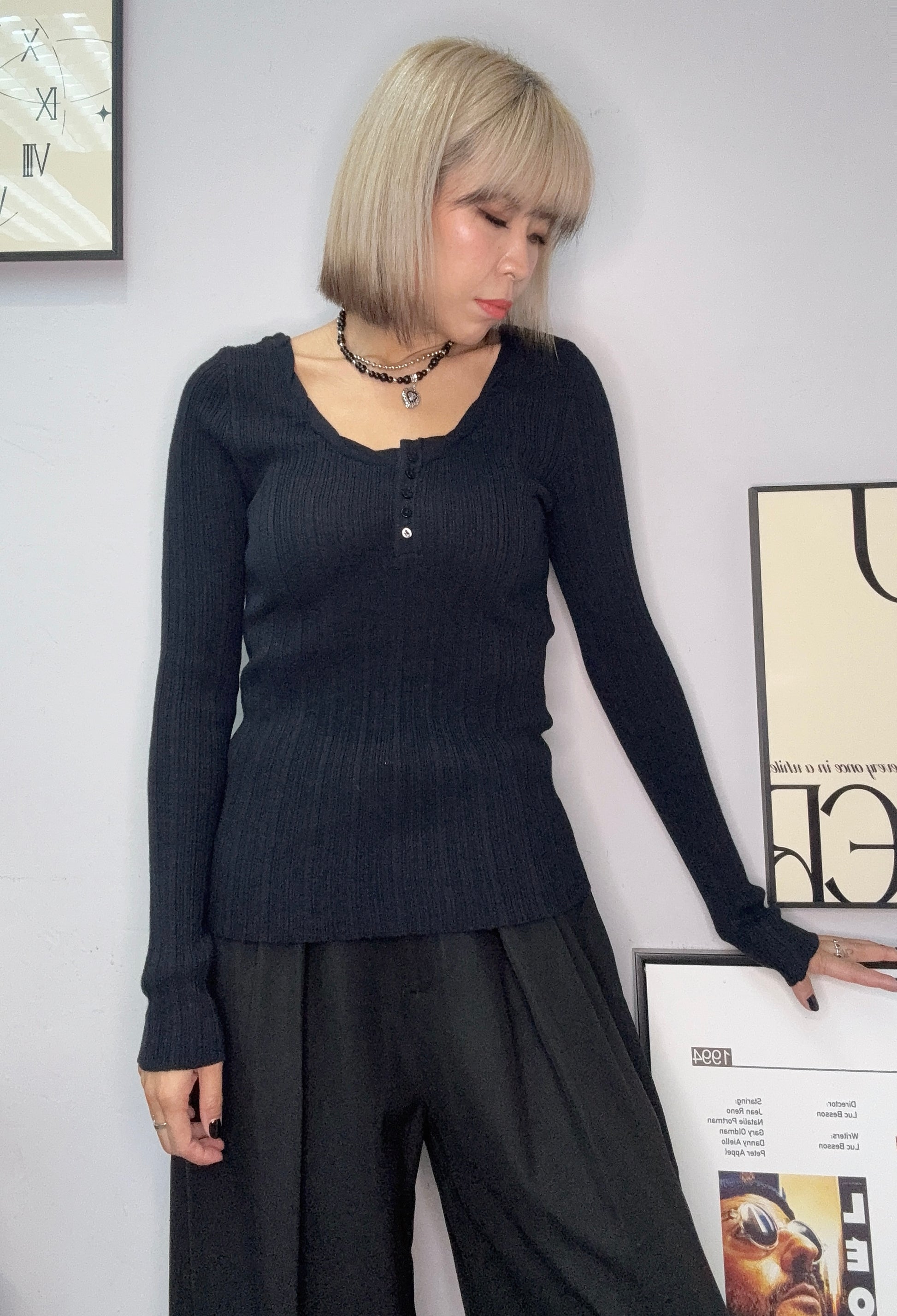 Twist collar knit top