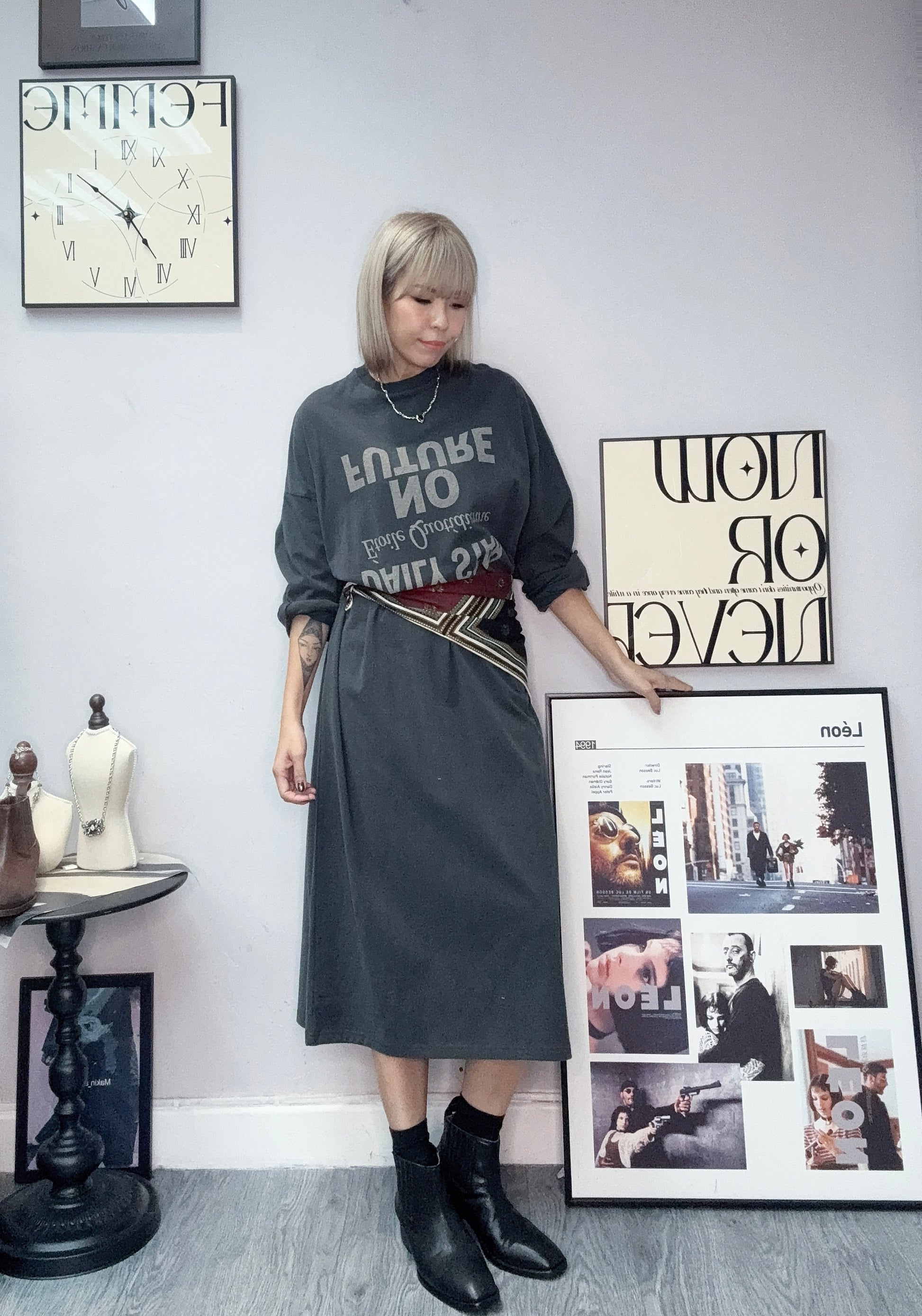 Words printed long one piece tee #00025